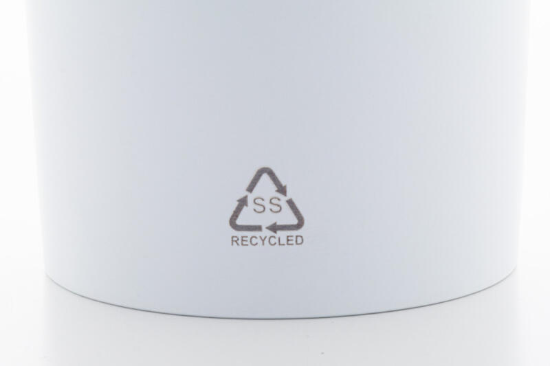 Duplafalú, újrahasznosított rozsdamentes acél vákuumszigetelt thermo bögre PS műanyag ivófedéllel, 600 ml.