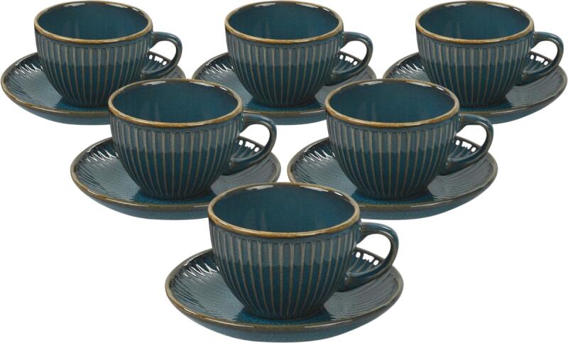 Hermia Linea kerámia csésze alátéttel 6 db-os szett 210 ml, petrol, petróleum