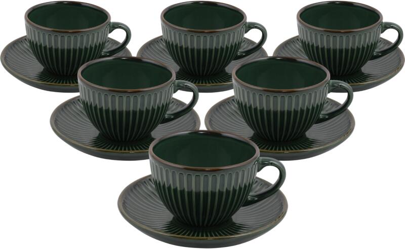 Hermia Linea kerámia csésze alátéttel 6 db-os szett 210 ml, zöld, zöld