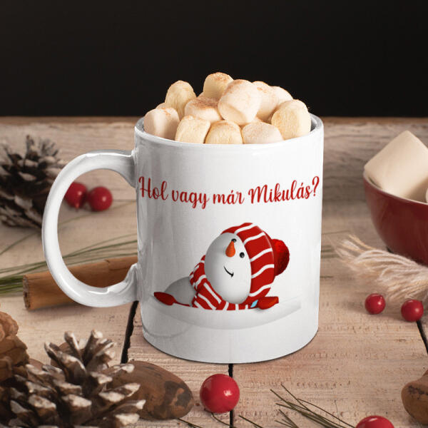 Hóember - egyedi mintás kerámia bögre, egy igazán személyes ajándék Apának, Tesónak, Nagyapának, bárkinek Karácsonyra, vagy bármilyen más esemény alkalmából. Garantáltan nagy örömet okozol vele a megajándékozottnak.