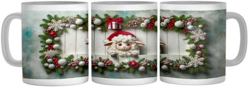 Karácsonyi Cartoon Cuki Bárány - 3D Mintás Bögre (854487)