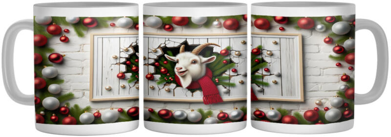 Karácsonyi Cartoon Happy Kecske - 3D Mintás Bögre (115294)