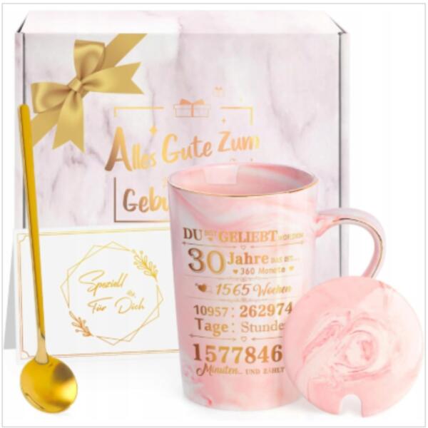 Kerámia bögre fedéllel és kanállal Ajándék 30. születésnapra, német (X001ZWNAA7)