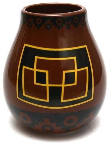 Ez egy igazán különleges termék. Nagyméretű, dél-amerikai népművészeti motívummal díszített mate csésze. Művészien kivitelezett. Belül és a nyakánál mázas, így rendkívül könnyen tisztítható. Belül fehér. Nagy mérete miatt irodai használatra kiváló, nem kell olyan gyakran vízért szaladgálni. Praktikus és mutatós!