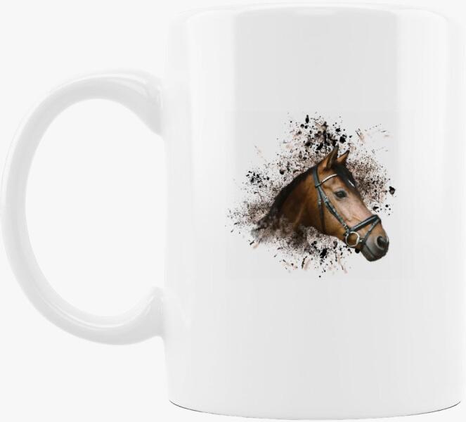 Barna ló arckép bögreEgy barna ló arcképe absztrakt háttérrel lovasoknak, állatbarátoknak...