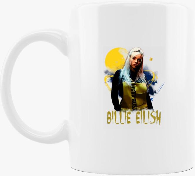 Billie Eilish bögre Az énekesnő rajongói mintája színes absztrakt háttérrel...
