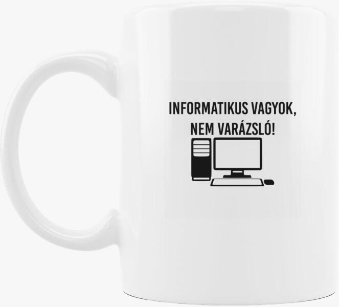 Informatikus vagyok, nem varázsló bögreEgyedi, humoros minták informatikusoknak. bögrek, pulcsik saját részre, munkaruhának vagy ajándékba! Nézze meg a vicces mintákat! ...
