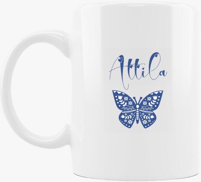 Kék folklór lepkés névvel bögreKedves dizájn gyermekednek, vagy kedvesednek a nevével ellátva személyre szabottan. Egyedi és különleges, finom pasztell kék szín, ötvözi ...