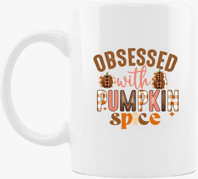 obsessed pumpkin spice bögre Tökös design, obsessed with pumpkin spice felirattal, őszi barnás színekben, textúrákkal...