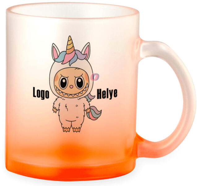 Prémium logózott, fényképes üveg bögre, egyedi grafikával 350 ml átmenetes Orange. Kiváló minőségű dekorációs kiegészítő, de szuper ajándék is lehet
