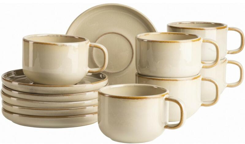 Mäser Cordelia Sand kávéscsészék és csészealjak szett, 6+6 db, bézs