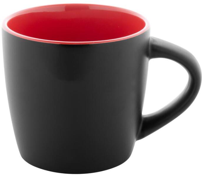 Magas minőségű kerámia bögre matt fekete külsővel és fényes színű belső felülettel, 300 ml. Kraft papír dobozban.
