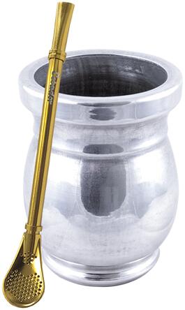 Palo Santo-ból készült elegáns kehely fém borítással yerba mate teához. A Palo Santo (spanyolul "Szent Fa") egy dél-amerikai fa fajta, melynek különleges képességeket tulajdonítanak. A helyi hiedelmek szerint rossz energiák ("mala energia") ellen használják. Ahogy egy helyi mondás tartja:"Palo santo para limpiar tu casa de la mala energia, palo santo para la buena suerte"
