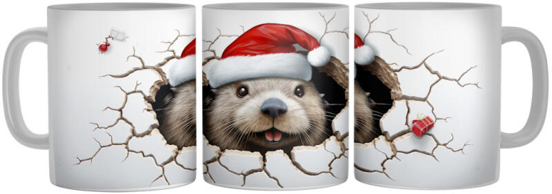 Mikulás sapkás hód - 3D Mintás Bögre (618342)