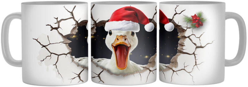 Mikulás sapkás kacsa - 3D Mintás Bögre (152264)