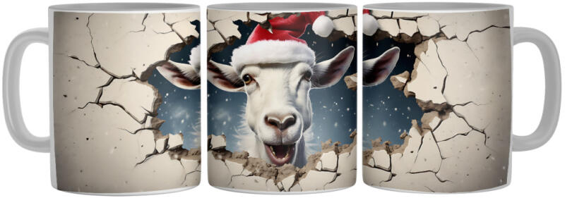 Mikulás sapkás kecske - 3D Mintás Bögre (502408)
