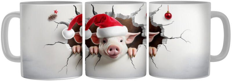 Mikulás sapkás kis disznó - 3D Mintás Bögre (828887)