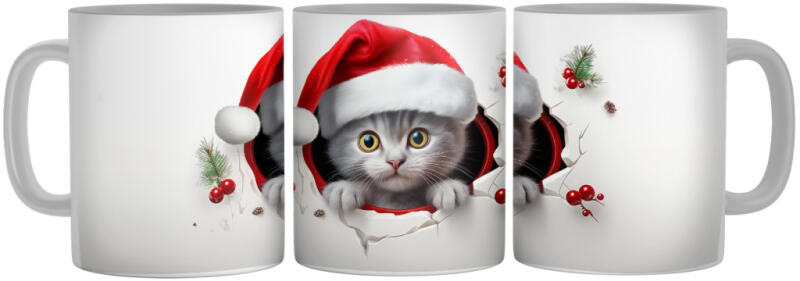 Mikulás sapkás kiscica - 3D Mintás Bögre (393847)
