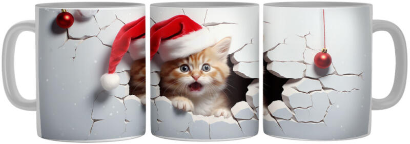 Mikulás sapkás kiscica - 3D Mintás Bögre (394928)