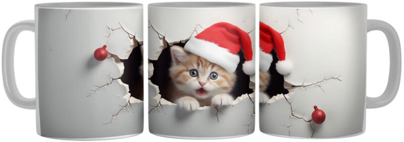 Mikulás sapkás kiscica - 3D Mintás Bögre (877959)