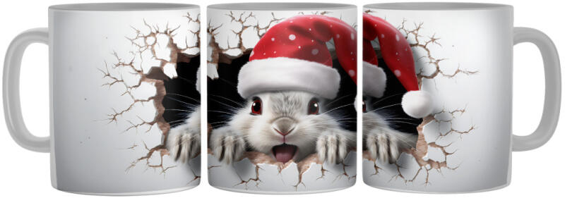 Mikulás sapkás nyuszi - 3D Mintás Bögre (139598)
