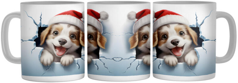 Mikulás sapkás spániel kiskutya - 3D Mintás Bögre (223930)