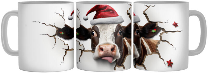 Mikulás sapkás tehén - 3D Mintás Bögre (180702)