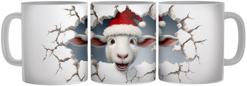 Mikulás sapkás vicces kecske - 3D Mintás Bögre (231028)