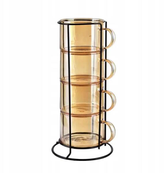 Mondex 4 db-os csésze szett kávé- és teatartó állványon, elegáns mézszínű (HTID2768)