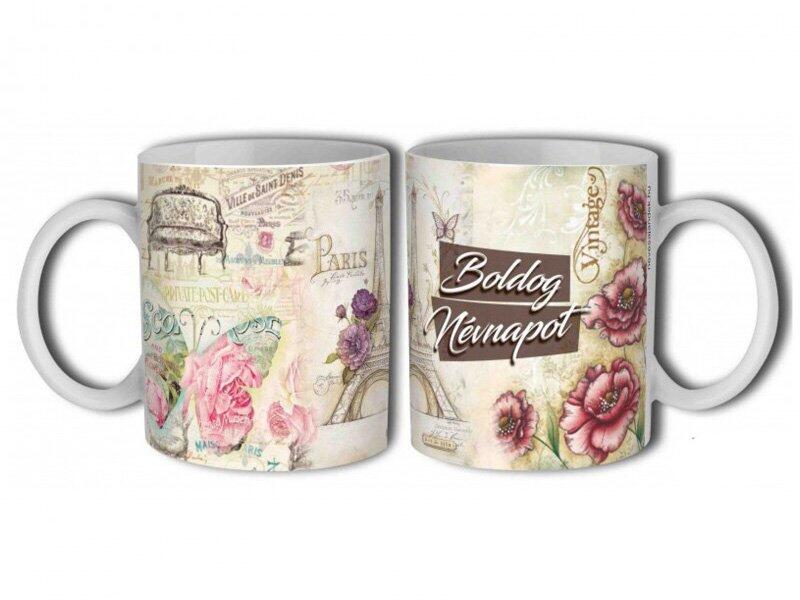 Nevesajándék Bögre 3 dl - Boldog Névnapot virágos - Névnapi ajándék (B751)