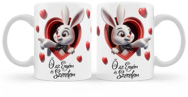 Nevesajándék Bögre 3dl - Ő az enyém és szeretem fiú nyuszi - Valentin Nap (B1300)