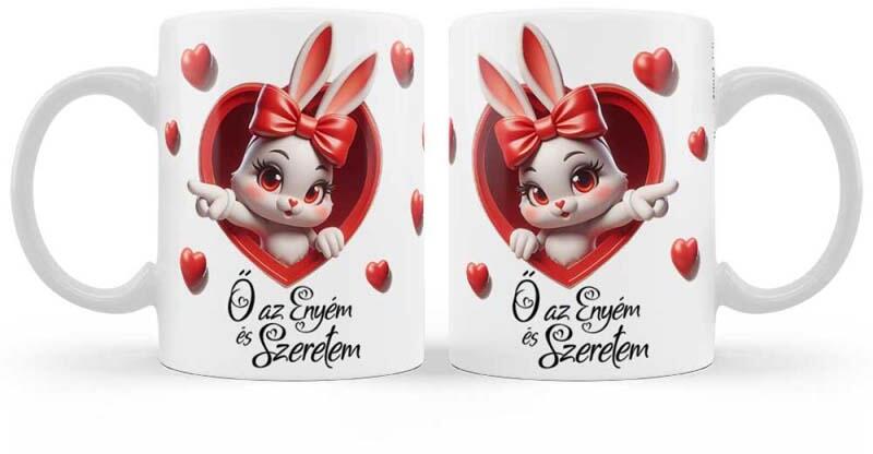 Bögre 3dl - Ő az enyém és szeretem lány nyuszi Valentin Nap