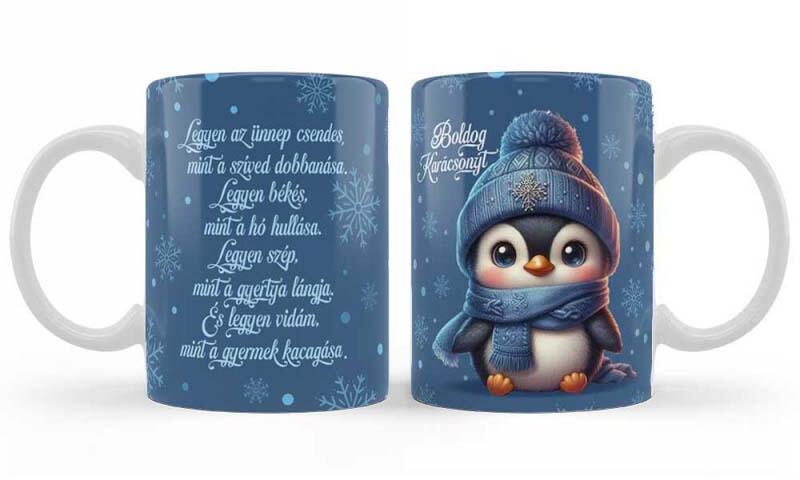 Karácsonyi Bögre 3 dl - Boldog Karácsonyt felirattal Pingvin mintás