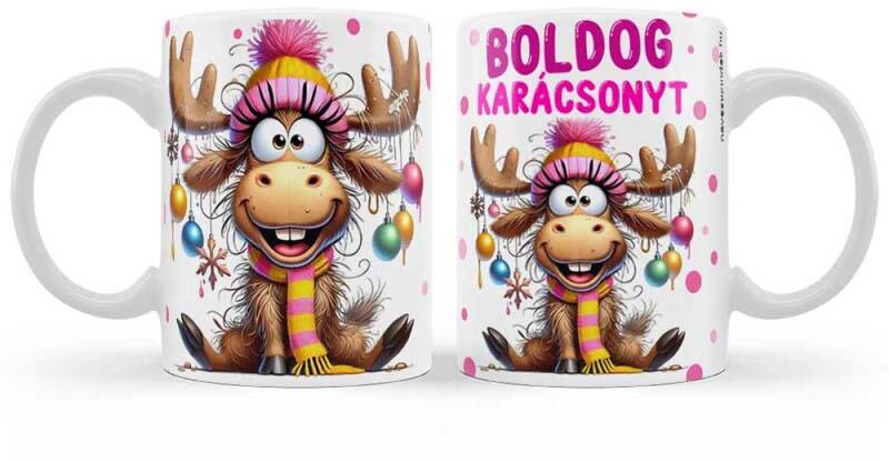 Nevesajándék Karácsonyi Bögre 3 dl - Boldog Karácsonyt feliratú rénszarvas lány (B1366)