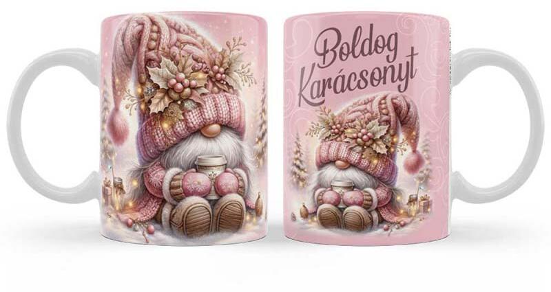 Karácsonyi Bögre 3 dl - Boldog Karácsonyt feliratú Rózsaszín Gnome Manós