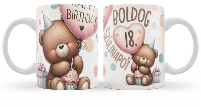 Nevesajándék Szülinapi Ajándék, Bögre - Boldog 18 Szülinapot Macis (B1317)