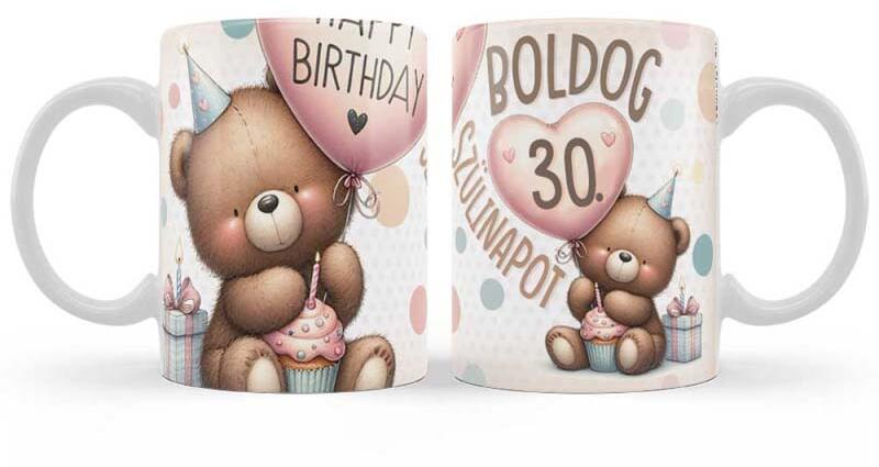 Nevesajándék Szülinapi Ajándék, Bögre - Boldog 30 Szülinapot Macis (B1319)