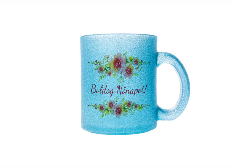 Nőnapi akvarell virágos bögre : Bögre szín - Türkiz