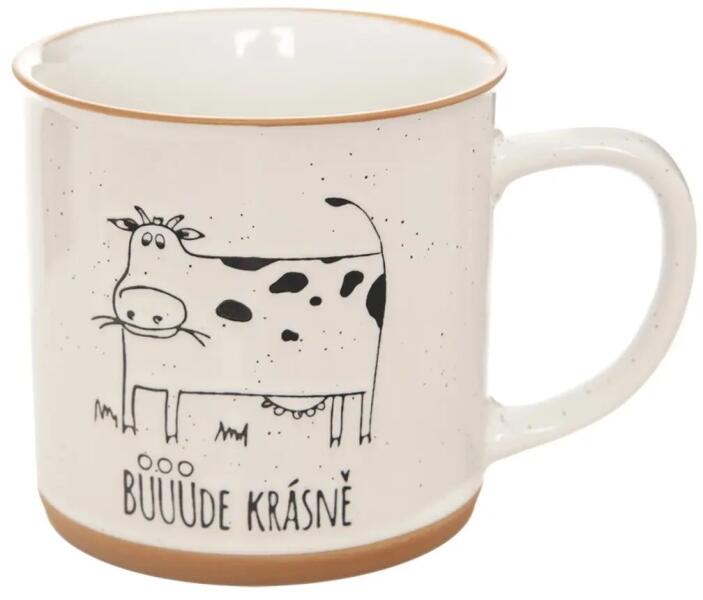 A 0,53 literes kerámia bögrét egy tehén rajza és az eredeti "BŮŮŮde krásně" (csodálatos lesz) felirat díszíti.