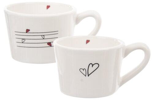 A vékony vonalú szívek finom díszítése biztosítja, hogy a forró kávézás kellemes hangulatban teljen. Esetleg a partnerével vagy egy jó barátjával. A bögrék mikrohullámú sütőben használhatók és mosogatógépben moshatók.