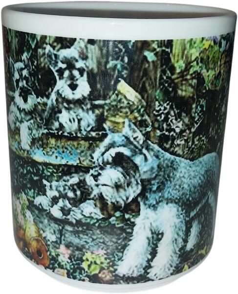 Porcelán bögre kutyás képpel - Törpe Schnauzer kölykökkelŰrtartalo m: 2,5 dl