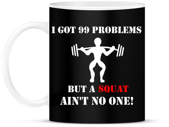 printfashion 99 problémám van, de egy guggolás nem számít annak - Bögre - Fekete (1297914)