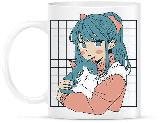 printfashion Animés lány cicával - Bögre - Fehér (13994254)