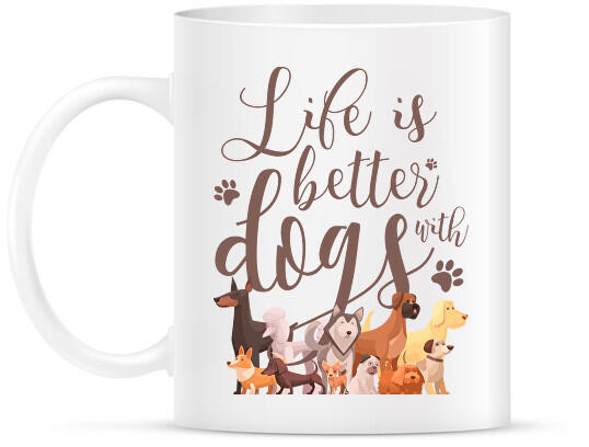 printfashion Az élet jobb kutyákkal - Bögre - Fehér (14505523)