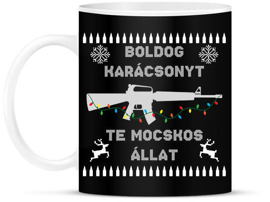 printfashion Boldog karácsonyt te mocskos állat - Bögre - Fekete (10945815)