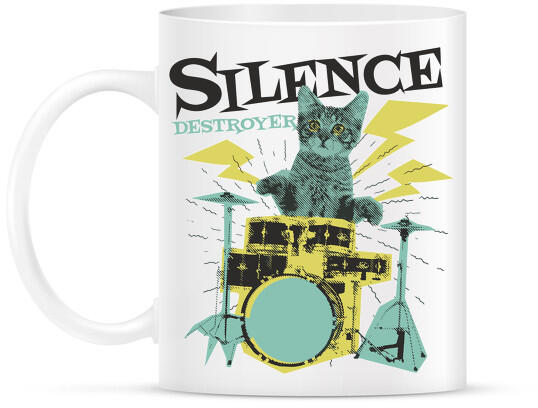 printfashion Cica dobos a csend romboló - Bögre - Fehér (5605143)