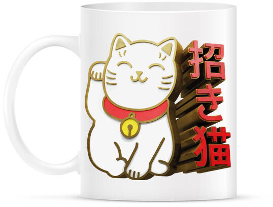 printfashion Cica - kínai szerencsehozó - Bögre - Fehér (5622561)