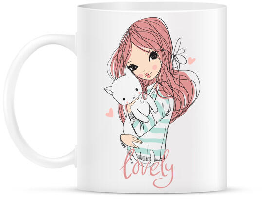 printfashion Cicás lány - Bögre - Fehér (4666378)