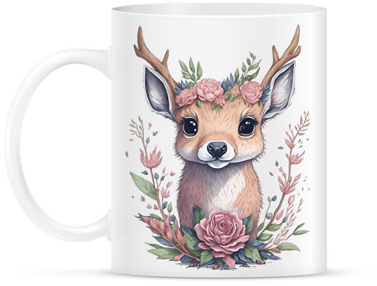printfashion Cuki szarvas bébi virágokkal - Bögre - Fehér (13182531)