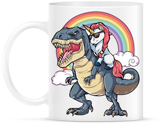 printfashion Dínó és szivárvány póni lovas - Bögre - Fehér (11513108)